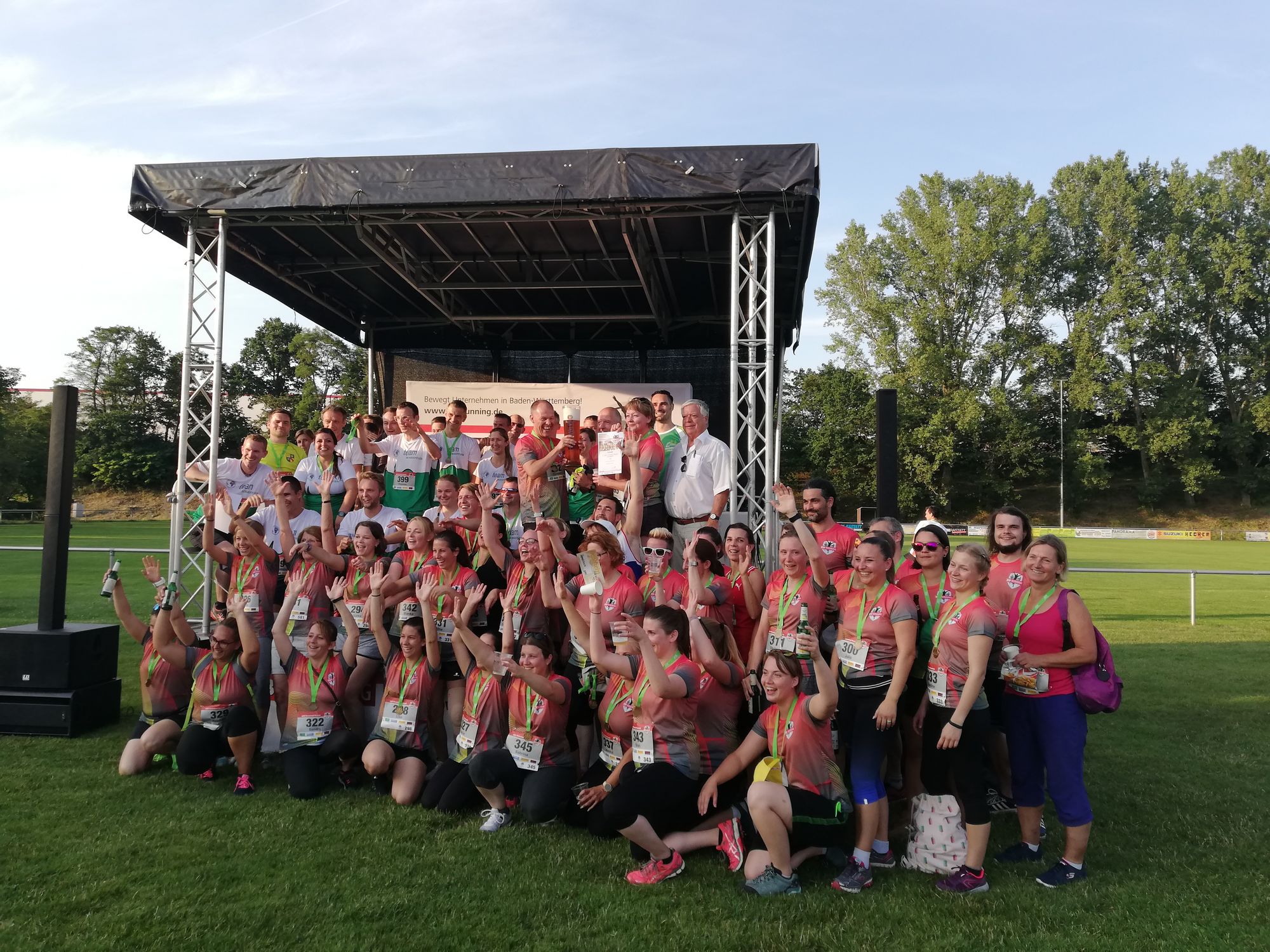 Über den Titel größtes Laufteam durfte sich dieses Jahr das Team der Stadt Rastatt freuen. Gefolgt von Team Schaeffler und dem Landratsamt Rastatt durften sie das 3l-Bierglas von Erdinger alkoholfrei bei der Siegerehrung von Björn Kalteisen sowie Philipp Krämer in Empfang nehmen.