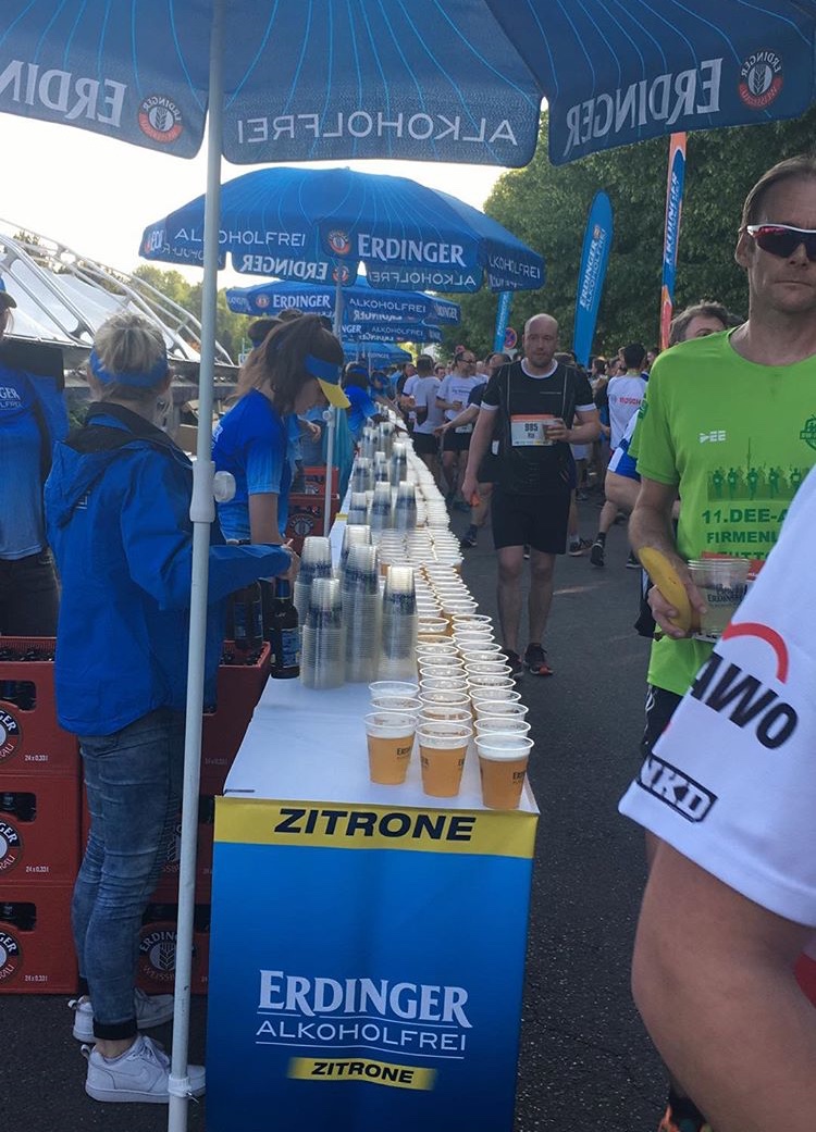 Gerade einmal 19:23 Minuten (Netto) nach dem Startschuss waren vergangen, da überquerte Ulrich Königs vom "Porsche Team" als schnellster Läufer die Ziellinie und nahm erstmalig eine Teilnehmermedaille in Empfang. Nach getaner Laufarbeit konnten sich dann alle Teilnehmerinnen und Teilnehmer über Getränke von alwa, Äpfel und Bananen von der AOK Baden-Württemberg und ein leckeres Erdinger alkoholfrei freuen. Nach 21:36 Minuten (Netto) folgte Königs dann die schnellste Frau, Jannika John, die für das Team der Universität Tübingen an den Start ging.