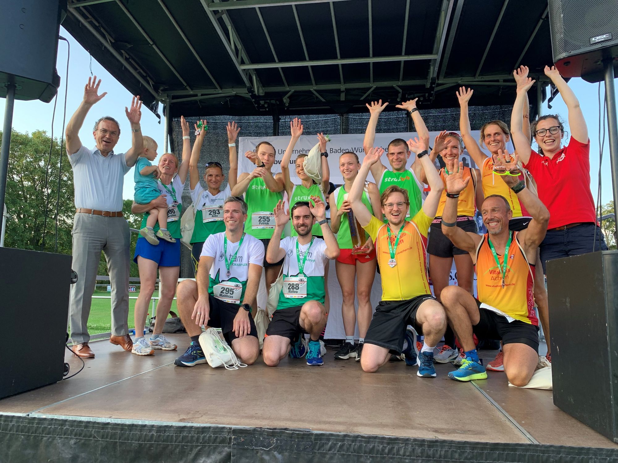 Den Titel als größtes Laufteam konnte sich in diesem Jahr die Stadt Rastatt mit insgesamt 28 Starterinnen und Startern sichern. Platz zwei ging an das „Team Schaeffler“ mit 27 Starter:innen und auf dem dritten Platz landete das Landratsamt Rastatt mit insgesamt 20 Starter:innen.